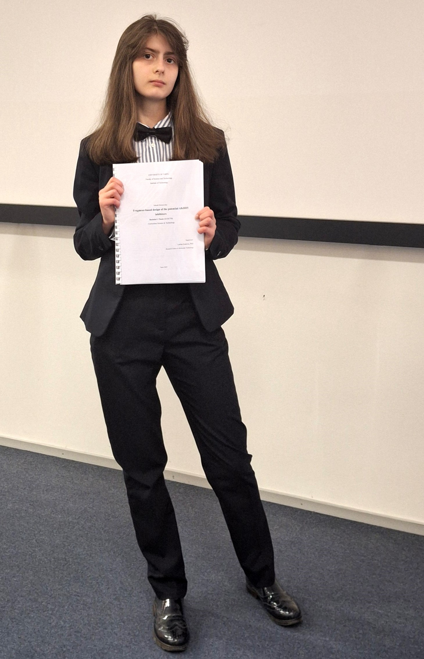 Teisel juunil 2025 kaitses Yehudit Morozovsky oma bakalaureusetöö. Töö keskendub uute potentsiaalsete AlkBH5 inhibiitorite disainile, kasutades erinevaid arvutusmeetodeid. AlkBH5 on imetajate demetülaas, mis vastutab m6A (N6-metüüladenosiin) modifikatsiooni eemaldamise eest RNA-s. AlkBH5 mitmekülgne...